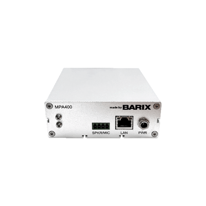 The Exstreamer MPA400 feeds 2 – 8 ohm speakers and turns them into an extensive Audio over IP system. A wide variety of audio environments, such as Dante ®, SIP, InformaCast and Syn-Apps are supported. The codec supports PCM, AACplus, MP3, OPUS, G.711, G.722 that can be served over HTTP and RTP protocols. Audio files can be stored on the internal memory and their playback can be triggered via a simple UDP command. The MPA400 is an easily-installed solid metal device. All PoE standards are supported (up to 4PPoE) to feed the built-in 40W full digital class-D audio amplifier meeting different speaker requirements. If PoE is not an option, an external power supply can be deployed too. The device offers a modern and user-friendly web interface for its configuration. REST API to interface with third party applications is also available. More Information: https://www.barix.com/product/exstreamer-mpa400/