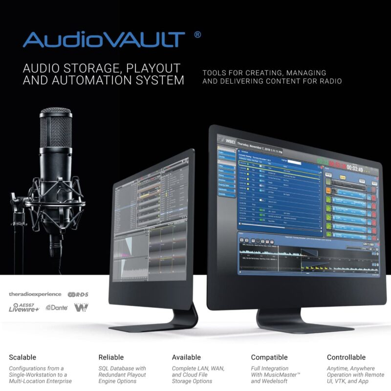 AudioVAULT 11 creates an environment that encourages talent to be creative as possible in delivering compelling content, building audience and increasing sales. AudioVAULT 11 provides the tools you need to work smarter and achieve more. Just like you, AudioVAULT 11 is focused on what goes out on the air. The all-new advanced AudioVAULT Scheduler allows complex program and content distribution tasks to be managed seamlessly intuitively and straightforwardly. AudioVAULT Anywhere delivers powerful control and simplified operations at your fingertips all from any connected device wherever and whenever you need it. Ideally suited for remote voice tracking, playlist and program management, file playback, remote broadcast, sports, and remote talent. CloudVAULT enables cloud-based shared and redundant content storage to deliver greater efficiency and disaster recovery using a reliable, scalable, and secure Microsoft® Azure platform. Leverage content on a shared offsite platform across your cluster, group, or around the globe using proven and reliable Azure solutions. Seamless integration with Adobe® Audition digital audio editing software. Streamline production with powerful new metadata tools to simply load audio into AudioVAULT directly from Audition eliminating tedious data entry. AudioVAULT 11 is an entire suite of powerful, specialized tools designed to support you in delivering the best, the richest, content to your listeners. These modules can be put together in infinite ways, to fit any kind of programming, in any size market, from a single station to a multi-site group. Direct Buy: https://www.bdcast.com/products/studio-products/audiovault/