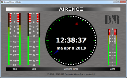 The AIRENCE sends out control signals over USB based on the HID protocol. This means that the main output signals can be displayed on a TFT screen in a beautiful meter application. Both Program and Sub stereo signals are shown on a high resolution PPM. A smaller separate stereo meter shows all signals heard through the CRM speakers. At the same time this software application shows you a professional looking Radio clock that is synchronized by the nearest NTP server over he Internet.