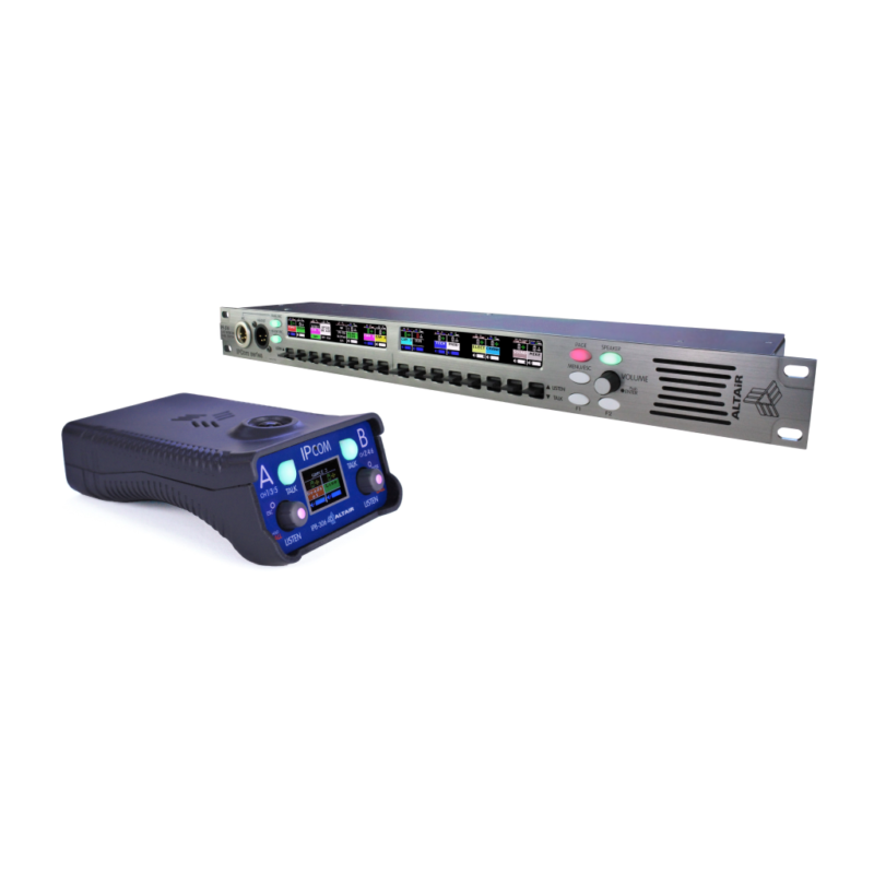Main Features No physical matrix is required. The IPcom system needs just a managed PoE switch to operate. 128 users and a configuration capacity of up to 128 groups and 32 CUE Light signals. Expandable system. Compatible with standard IP LAN networks. Affordable cabling (CAT5/6 regular wiring). “Plug & Play“. All Altair IPcom Series units come preconfigured and ready to operate in a basic configuration of 2 party-line groups on 2 separate channels. Intuitive and easy-to-use configuration software. “Distributed intelligence” concept. ALTAIR IPcom Series does not need a physical matrix, making the whole system more affordable. Each unit acts as a backup for the complete network configuration. IPB-306 beltpack features an ergonomic and lightweight casing made of highly resistant ABS. Standard 4M-XLR headset connector. ALTAIR IPcom Series Models IPB-306: can be powered by PoE, can be configured with up to 6 channels, includes two keys/encoders that allow the management of the different functions assigned to the channels. Functions such as: partyline, private calls, cue-light receiver, speaker and microphone. IPW-306Station: 6-channel communication console in compact format, for fixed wall or desktop installation. IPF-316 Panel: can be powered by PoE, has 16 keys to control up to 32 channels distributed on 2 pages. In addition, each channel can be configured with different functions: intercom communication, private calls, reception and sending of CUE Light signal, GPIOS, … IPX-301 interface: designed to connect IPcom systems to wired and wireless party-line intercom systems (4W&2W) of any manufacturer. IPX-302 Interface: DUAL interface designed to connect IPcom systems to 4W systems (e.g. CCUs) and to insert/extract audio signals from the system. IPA-304 interface: Interface that allows inserting and extracting AES67 signals(4 streams IN / 4 streams OUT). Direct Buy:- https://www.altairaudio.com/ipcom